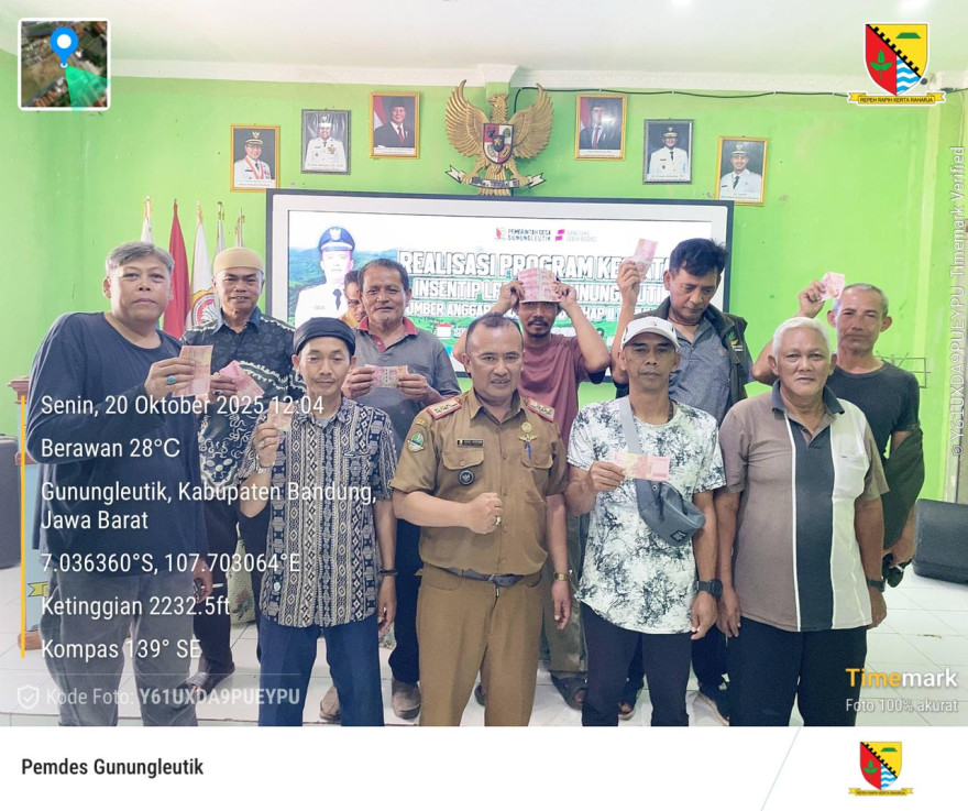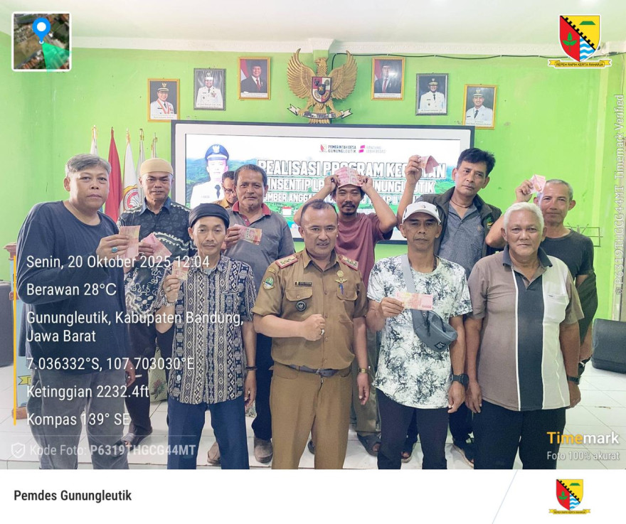 Senin, 20 Oktober 2025 Pemerintah Desa Gunungleutik Melaksanakan penyaluran Insentip bagi Anggota LPM Desa Gunungleutik dilaksanakan di Aula Desa Gunungleutik Kecamatan Ciparay Kabupaten Bandung.