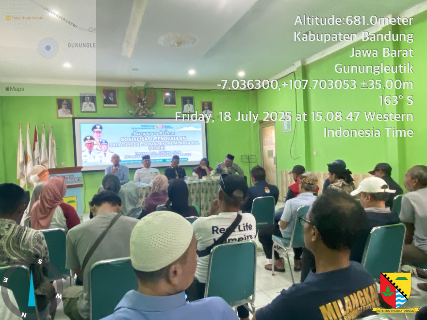 Pemerintah Desa Gunungleutik melaksanakan Musyawarah Desa (Musdes) Data Tunggal Sosial Ekonomi (DTSEN) di Aula Desa Gunungleutik, Musdes ini yang hadir diataranya. Kepala Desa, Perangkat Desa, TKSK Kec. Ciparay, Pendamping PKH, Ketua RW dan Tokoh Masyarakat diwilayah Desa Gunungleutik.