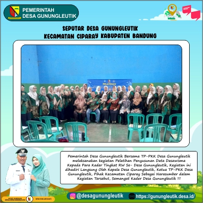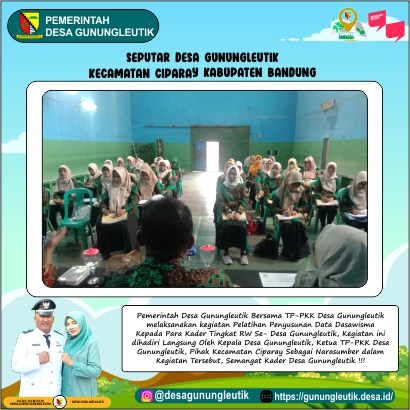Pemerintah Desa Gunungleutik bersama TP-PKK Desa Gunungleutik melaksanakan Kegiatan Pelatihan Penyusunan Data Dasawisma Bagi KaderTingkat RW Se-Desa Gunungleutik, dilaksanakan di Gedung Serbaguna Desa Gunungleutik,.