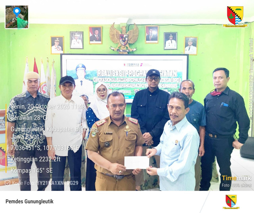 Senin, 20 Oktober 2025. Pemerintah Desa Gununungleutik melaksanakan kegiatan Penyaluran operasional BPD Gunungleutik yang bersumber dari Anggaran ADPD Tahap II Tahun 2025 di Aula Desa Gunungleutik.
