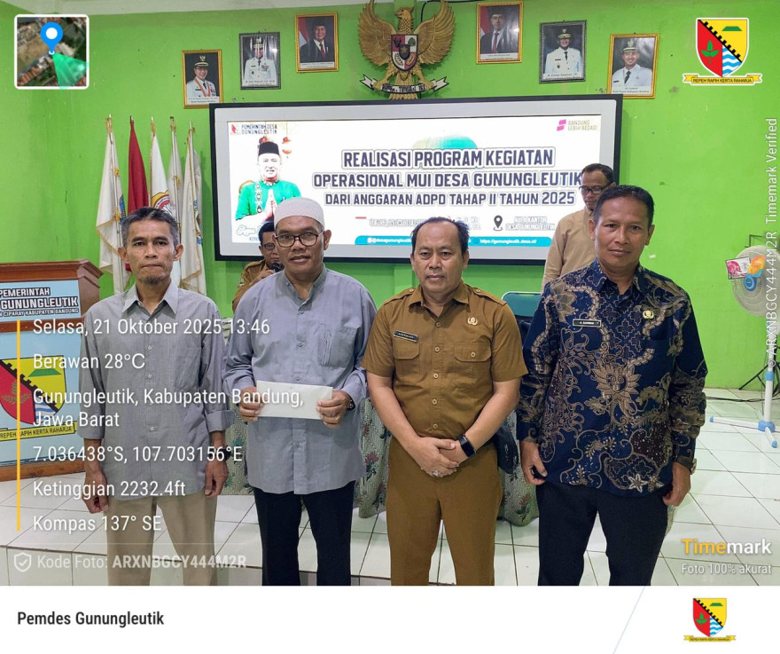 Selasa, 21 Oktober 2025 Pemerintah Desa Gunungleutik Melaksanakan penyaluran Operasional Bagi Lembaga Desa Gunungleutik Yakni MUI Desa dilaksanakan di Aula Desa Gunungleutik Kecamatan Ciparay Kabupaten Bandung.