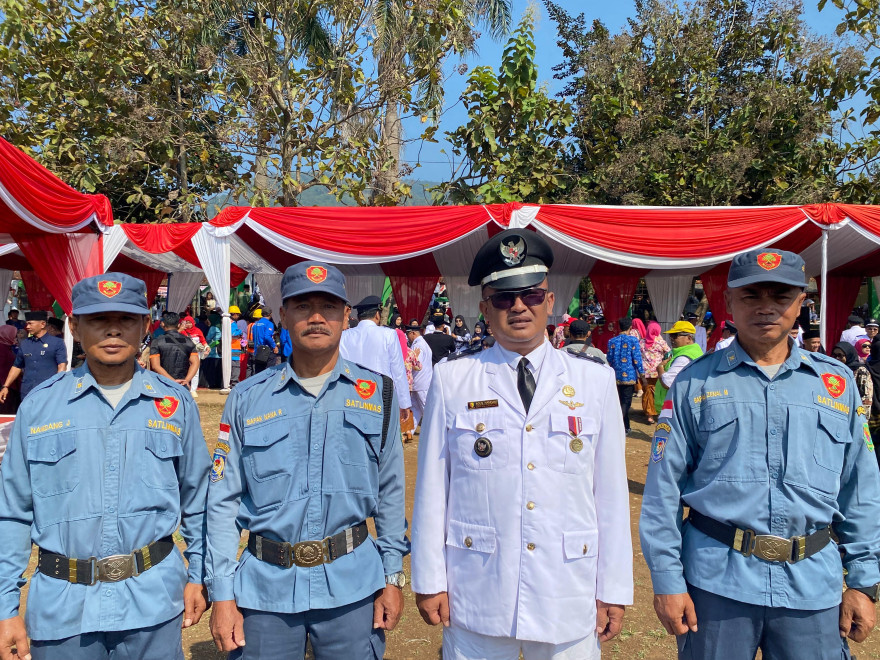 Pemerintah Desa Gunungleutik menghadiri Upacara Pengibaran Bendera Merah Putih Tingkat Kecamatan Ciparay di Lapang Barujati Desa Pakutandang.
